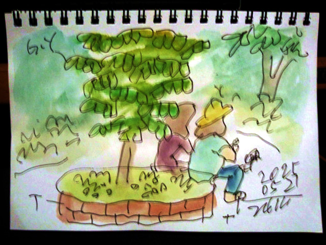 [日記] 5月27日(火) 天気はあまりさえなかったが、芝生広場(光が丘公園)でスケッチしてついでに事務所も描いてきました。 (img) (img)